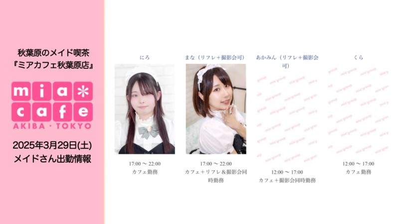 本日3月29日(土)ミアカフェ秋葉原店