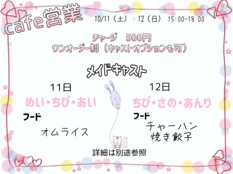 ïŒ10/11,12 cafeå¶æ¥ïŒ https://t.co/zUNo4ggN9X