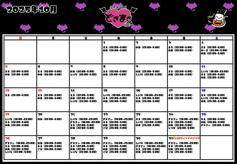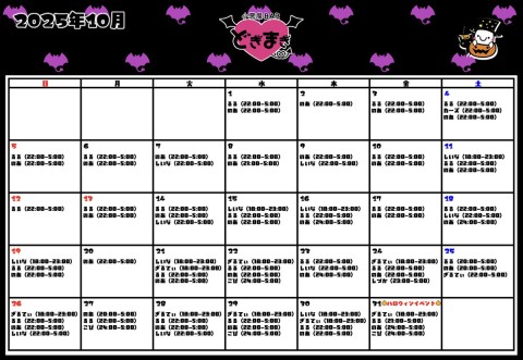 😈10月✞✟出勤予定表😈