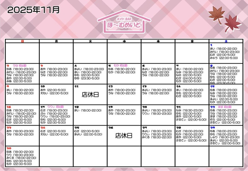 | 営業時間 | 18:00-5:00 | ||||||||||||||