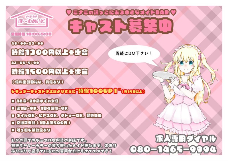 メイドカフェでGO!では情報提供(無料)を募集しております。