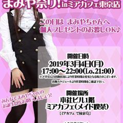 | å¶æ¥æé | âãã¢ã«ãã§æ±äº¬åºïŒã¡ã€ãã«ãã§ïŒhttp://www.mia-cafe.com/ãâ â¡å¹³æ¥ãæïœéãïŒïŒïŒïŒïŒïœïŒïŒïŒïŒïŒ â¡åæã»æ¥æã»ç¥æ¥ãïŒïŒïŒïŒïŒïœïŒïŒïŒïŒïŒ â å®äŒæ¥ããªãïŒ2019幎1æããå®äŒæ¥å»æ¢ïŒ â¡ã©ã¹ããªãŒããŒãéåºã®ïŒïŒåå ãïŒïŒïŒïŒïŒéåºã®å ŽåâïŒïŒïŒïŒïŒã©ã¹ããªãŒããŒ å¶æ¥æ¥ãåºå€ç¶æ³ã«ã€ããŠã¯ãã¡ãã http://pandaland.cutegirl.jp/mif/c_cms_csv/sch_top.php âãã¢ãªã©ïŒãã©ãæ±äº¬åºïŒæ®åœ±äŒïŒãªãã¬ïŒhttp://www.mif-lr.com/ãâ â¡å šæ¥ãïŒïŒïŒïŒïŒãïŒïŒïŒïŒïŒãã§ãããªã©ã¯ãŒãŒã·ã§ã³åºå€ã¹ã¿ãããããæé垯ã®ã¿å¶æ¥ã§ãã â å®äŒæ¥ã¯äžå®äŒïŒåºå€ã¹ã¿ãããããæé垯ã®å¶æ¥ïŒ â¡æçµåä»ãéåºã®ïŒïŒåå ãïŒïŒïŒïŒïŒéåºã®å ŽåâïŒïŒïŒïŒïŒïŒïŒïŒïŒïŒïŒè¿ã«æœè¡æéãçµããã³ãŒã¹ïŒ â»é«æ ¡çäžå¯ âæ·±å€å¶æ¥ã«ã€ããŠã¯ãå ¬åŒãµã€ãå³äžã® http://market.chu.jp/schedule1/sche37.cgi ãã¢ã°ã«ãŒãç·åã¹ã±ãžã¥ãŒã«ïŒïŒ°ïŒ£ã»ã¹ããïŒ http://market.chu.jp/schedule1/sche37.cgi?dm=1 ãã¢ã°ã«ãŒãç·åã¹ã±ãžã¥ãŒã«ïŒã¬ã©æºåž¯ïŒ ãã芧ãã ãããåç¥æ¥ã®ã¿å¶æ¥ãšãªããŸããåç¥æ¥ä»¥å€ã¯æ·±å€å¶æ¥ããããŠãããŸããã æ·±å€å¶æ¥å¯Ÿè±¡æ¥ãïŒïŒïŒïŒïŒãç¿æïŒïŒïŒïŒïŒïŒ¬ïŒïŒ¯ïŒïŒïŒïŒïŒïŒ | ||||||||||||||