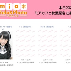 | 営業時間 | ●ミアカフェ東京店(メイドカフェ)http://www.mia-cafe.com/ ● □平日 月~金 17:00~22:00 □土曜・日曜・祝日 12:00~22:00 ★定休日 なし(2019年1月より定休日廃止) □ラストオーダー 閉店の60分前 22:00閉店の場合→21:00ラストオーダー 営業日や出勤状況についてはこちら。 http://pandaland.cutegirl.jp/mif/c_cms_csv/sch_top.php ●ミアリラ&フォト東京店(撮影会&リフレ)http://www.mif-lr.com/ ● □全日 12:00〜22:00 ですがリラクゼーション出勤スタッフがいる時間帯のみ営業です。 ★定休日は不定休(出勤スタッフがいる時間帯の営業) □最終受付 閉店の45分前 22:00閉店の場合→21:15(21:50迄に施術時間が終わるコース) ※高校生不可 ●深夜営業については、公式サイト右上の http://market.chu.jp/schedule1/sche37.cgi ミアグループ総合スケジュール(PC・スマホ) http://market.chu.jp/schedule1/sche37.cgi?dm=1 ミアグループ総合スケジュール(ガラ携帯) をご覧ください。告知日のみ営業となります。告知日以外は深夜営業いたしておりません。 深夜営業対象日 22:00〜翌朝5:00(L.O.4:00) | ||||||||||||||