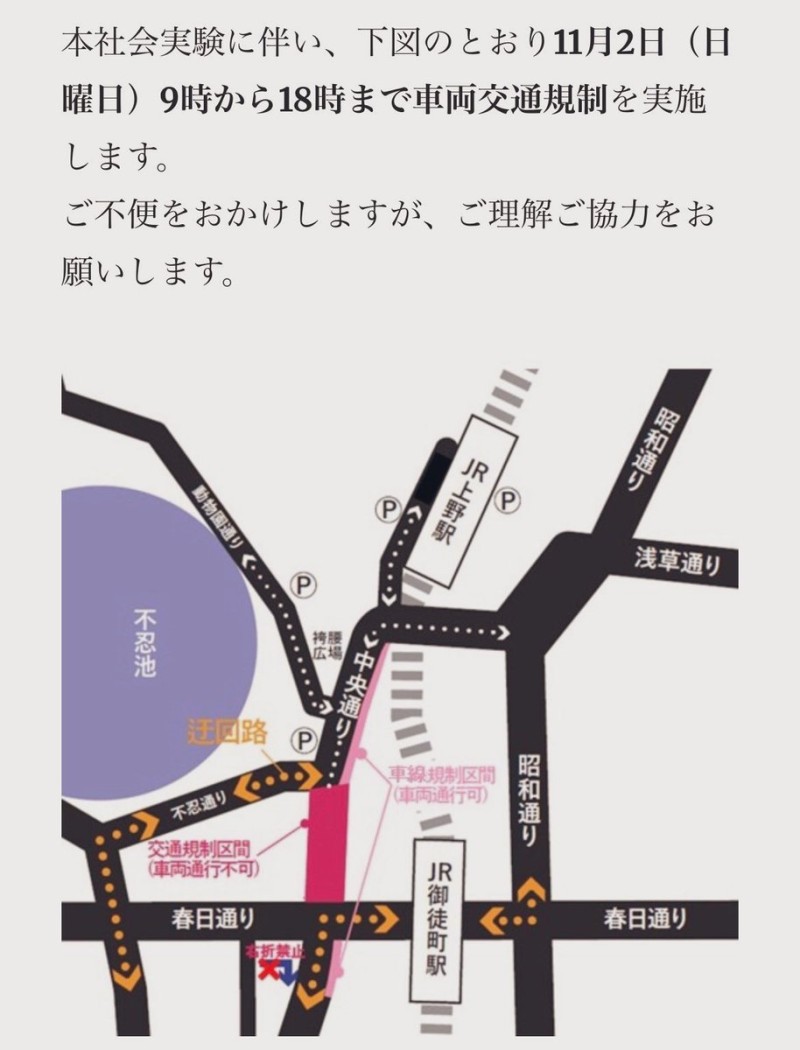 次の日曜日、社会実験で気絶からほど近い中央通りが車両通行止めになって、歩行者天国みたいになるみたい。ちょっと楽しみだなー