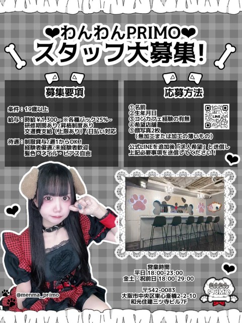@toi_primo @hikaru_primo @menma_primo @kotone_primo スタッフ大募集中🌟 画像をご確認の上公式LINEからご応募お待ちしております❕ #コンカフェ #求人 #コンカフェ求人 #大阪 #ミナミ #大阪ミナミ #宗右衛門町 #コンカフェ募集 #メイドちゃん募集中 #拡散希望 #メイドちゃん https://t.co/x7TIpTV6Nx