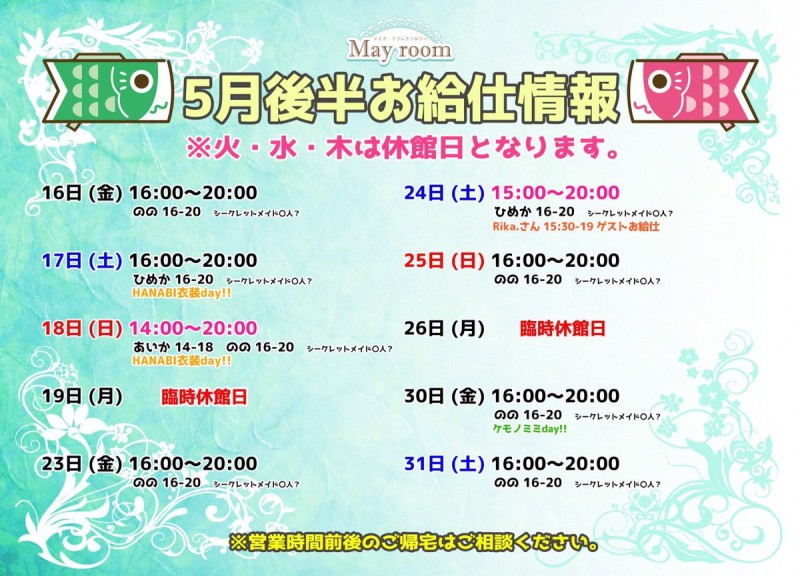 æ¬æ¥5/23ã®ã¯16æïœ20æãŸã§ð°ïžã®ã®â¡secret maidâ人ïŒ
