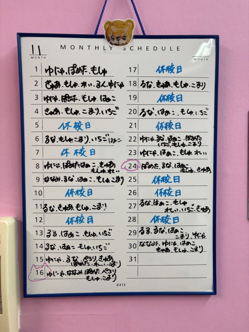 こちら、メイドちゃんたちの登校表となっております!!