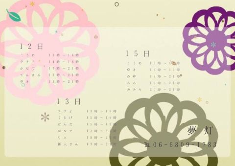 | 予算 | 1500円〜 | ||||||||||||||